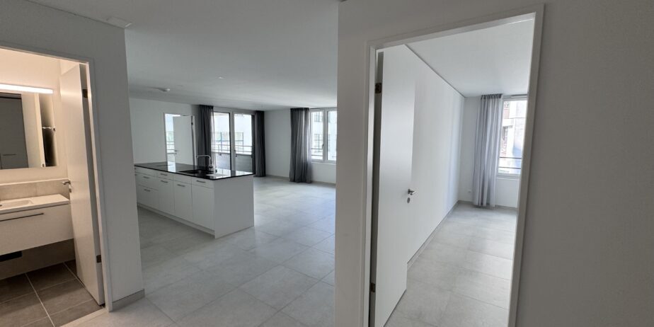 Objektbeschreibung: Wir vermieten eine wunderschöne 4.5-Zimmerwohnung im Herzen von Neuhausen. Erstbezug in Neuhausen am Rheinfall. Es erwartet Sie eine einzigartige Lage mit schönsten Aussichten auf den Rheinfall, gepaart mit dem urbanen Feeling eines sich dynamisch entwickelnden Quartiers. Ein sehenswürdiger Ort mit viel Lebensqualität “Five Corners” befindet sich an bester Lage; vor der Haustür befindet sich die Bushaltestelle und gleich um die Ecke der Bahnhof Neuhausen Rheinfall. Von hier erreichen Reisende, Pendler und Unternehmungslustige mit dem öffentlichen Verkehr schnell und unkompliziert Schaffhausen, Winterthur, den Flughafen und Zürich. In Gehdistanz profitieren Sie von einem vielfältigen Dienstleistungsangebot mit Restaurants, Cafés, Post, Bank, Apotheken, Coop, Denner und vielem mehr. Auch zur Schule und in den Kindergarten sind es nur 5 Minuten zu Fuss. Ihr berühmtester Nachbar wird jedoch der Rheinfall sein: Von diesem gewaltigen Naturspektakel trennen Sie gerade mal 250 Meter. Und an den Ufern des Rheins laden schöne Wege zu Spaziergängen, Jogging und Velo-Touren ein. Das Wohnhaus bietet auf zehn Geschossen 50 modern ausgebaute Wohnungen mit 1.5 bis 4.5 Zimmern. Die Wohnungen sind über ein zentrales Treppenhaus mit zwei Liftanlagen erschlossen. In den drei Untergeschossen befinden sich die Keller-, Technik- und Lagerräume, eine Tiefgarage mit 74 Parkplätzen und ein grosser Veloraum. Die wichtigsten Informationen in Kürze: • Eine helle, gut durchdachte Küche mit viel Stauraum und hochwertigen Einbaugeräten wie Kombi-Steamer, Induktionsherd, Anti-Fingerprint-Beschichtung und Kühlschrank mit Tiefkühler. Die Arbeitsfläche ist edlem Schwarz marmoriert. • Zwei Badezimmer mit Badewanne und Dusche, beide mit WC/Lavabo sowie einem praktischen Spiegelschrank ausgestattet. • Bodenbeläge: hellgraue Fliese im Wohnbereich und Zimmern. • Multimedia-Anschlüsse: Für Ihr Home-Office ideal – Anschlüsse im Wohnzimmer sowie im Kinderzimmer/Büro. • Zentral-Storentaste für die elektrischen Storen • Zwei Liftanlagen • Loggia 10.4 m2 • Ein eigener Waschturm mit Waschmaschine/Tumbler • Kellerabteil • Trockenraum und Veloraum für das ganze Gebäude • Separate Besucherparkplätze und Car-Sharing-Parkplatz • 1 Einstellplatz in der Tiefgarage kann für CHF 150.00 / Monat dazu gemietet werden Haben wir Sie überzeugt? Dann bewerben Sie sich jetzt für Ihre neue Traumwohnung! Highlights: LAGE: Einzigartige Lage im Herzen von Neuhausen mit schönsten Aussichten auf den Rheinfall. NUTZUNG: Eine helle, gut durchdachte Küche mit viel Stauraum und hochwertigen Einbaugeräten wie Kombi-Steamer, Induktionsherd, Anti-Fingerprint-Beschichtung und Kühlschrank mit Tiefkühler. Die Arbeitsfläche ist in edlem Schwarz marmoriert. QUALITÄT: Erstbezug in Neuhausen am Rheinfall. AUSSENBEREICH: In Gehdistanz profitieren Sie von einem vielfältigen Dienstleistungsangebot mit Restaurants, Cafés, Post, Bank, Apotheken, Coop, Denner und vielem mehr. Auch zur Schule und in den Kindergarten sind es nur 5 Minuten zu Fuss.
