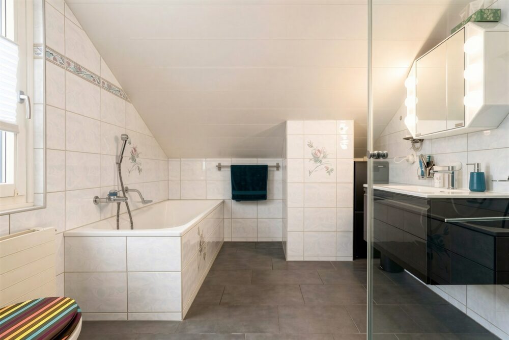 Wer dieses Zuhause betritt, spürt sofort eine besondere Atmosphäre. Offenheit, Licht und eine klare Raumwirkung prägen das Wohngefühl und schaffen eine Umgebung, in der man gerne ankommt. Architektur und Raumkonzept greifen harmonisch ineinander und verleihen dem Haus eine ruhige und hochwertige Ausstrahlung. Das Haus lebt von seiner angenehmen Grosszügigkeit und der Verbindung zwischen Innenraum und Aussenbereich. Wohnen, Leben und Alltag gehen hier fliessend ineinander über und schaffen ein Wohngefühl, das im täglichen Leben ebenso überzeugt wie in besonderen Momenten. Die durchdachte Gestaltung schafft ein Wohnumfeld, das funktional ist und zugleich angenehm zurückhaltend wirkt und Raum für ein lebendiges Familienleben bietet. Dieses Zuhause steht für Wohnqualität, Ruhe und ein Umfeld, in dem man gerne lebt. Ein Ort, der nicht laut wirken muss, sondern durch Atmosphäre, Grosszügigkeit und eine spürbare Wohnqualität seine Wirkung entfaltet. Auf einen Blick: + EIGENSCHAFTEN: freistehend, grosszügiges Grundstück, gepflegte Gartenanlage, Cheminéeofen, flexible Nutzungsmöglichkeiten, familienfreundliches Umfeld, thermische Solaranlage für Warmwasser + ZUSTAND: äusserst gepflegt, sorgfältig unterhalten + BAUWEISE: massiv, gedämmte Fassade, Isolierverglasung + RENOVATIONEN: Anbau (UG/EG/OG), Dach (Anbau), Wärmepumpe mit Speicher, Küche, Bad, Balkon, diverse Kleinarbeiten + PARKSITUATION: 2 Aussenstellplätze, 2 Einzelgaragen + LAGE: familienfreundliches Quartier, nähe Zentrum, naturnahes Umfeld, attraktive Wohnlage, ÖV Anbindung nur 2 Minuten entfernt Bei Interesse senden wir Ihnen gerne einen ausführlichen Objektbeschrieb inklusive sämtlichen Informationen und freuen uns Sie persönlich an einem Besichtigungstermin beraten zu dürfen. WENET AG – Immobilien der KI Group AG since 1974.