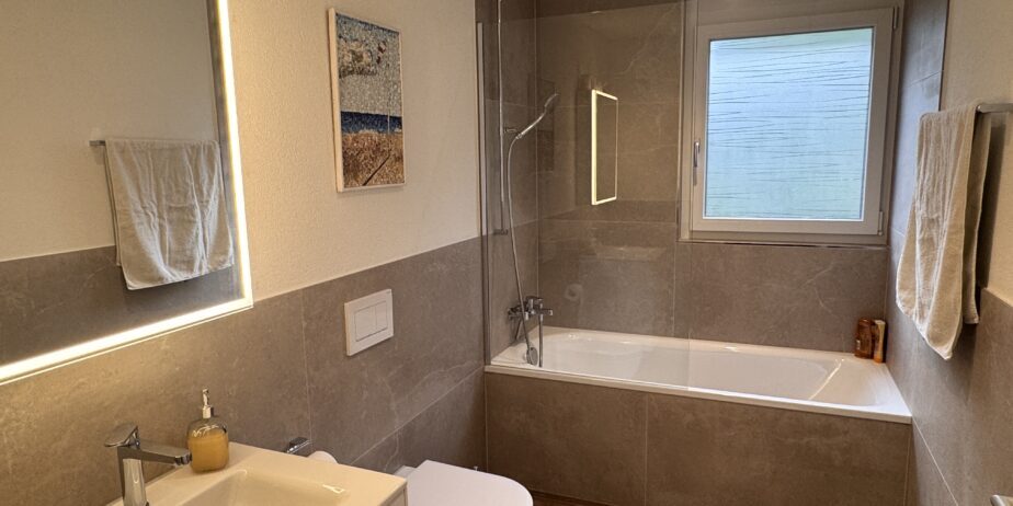 Der durchdachte Grundriss bietet drei Schlafzimmer, ein einladendes Wohnzimmer sowie zwei Badezimmer ( Closomat vorhanden) und sorgt für ein komfortables Wohngefühl. Die grosszügige Terrasse wird schnell zum Lieblingsplatz: Ob beim Frühstück mit Seeblick oder beim Entspannen mit Blick in die Berge – hier geniessen Sie Lebensqualität pur.