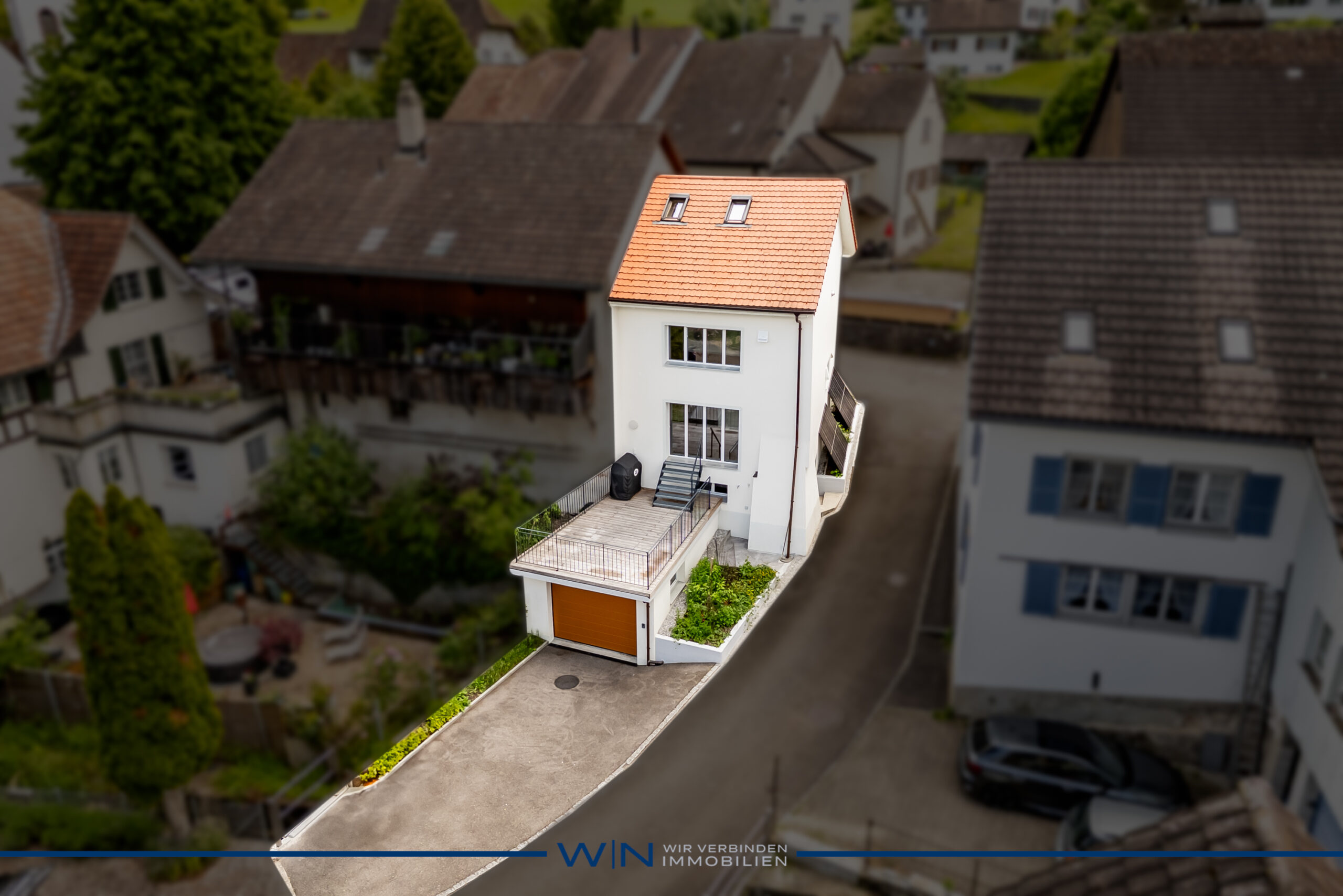 Dieses Haus erzählt Geschichten. Von liebevoller Sorgfalt, durchdachten Entscheidungen und dem Wunsch, einen Ort zu schaffen, der Wärme und Geborgenheit ausstrahlt. Hinter der charmanten Fassade verbirgt sich ein Zuhause, das mit viel Feingefühl und Respekt vor der Substanz in ein neues Kapitel geführt wurde. Schon beim Eintreten spürt man die besondere Atmosphäre: ruhig, hell und einladend. Klare Linien und natürliche Materialien schaffen eine harmonische Verbindung von Alt und Neu. Jeder Raum wurde mit Blick auf Ästhetik und Alltag gestaltet – wohnlich, hochwertig und authentisch. Auf einen Blick: + EIGENSCHAFTEN: Einzigartiger Innenausbau, nachhaltige Gebäudetechnik, stilvolle Kombination aus Altbauflair und moderner Eleganz, offenes Wohnkonzept, optimale Grundstücksausnutzung + ZUSTAND: Kernsaniert, neuwertiger Gesamtzustand, sofort bezugsbereit + RENOVATIONEN: Heizung, Küche, Badezimmer, kompletter Innenausbau, Fenster, Fassade, Isolation mit Steinwolle, Dach, Terrasse, Garagentor + TECHNIK: Wärmepumpenboiler, Komfortlüftung, Fernwärmeanschluss, BOSE-Soundsystem, mobile Photovoltaik-Panels, E-Mobilität (Ladestation) + LAGE: Zentral gelegen, ruhiges Wohnquartier, naturnahe Umgebung + PARKSITUATION: 1 Aussenparkplatz, 1 Garagenplatz inkl. Bei Interesse senden wir Ihnen gerne einen ausführlichen Objektbeschrieb mit allen relevanten Informationen. Wir freuen uns, Sie persönlich bei einem Besichtigungstermin beraten zu dürfen. WENET AG – Immobilien der KI Group AG seit 1974