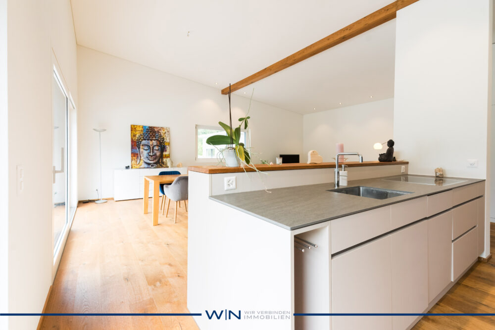 Exklusiver Ausbau – Wohnen neu definiert, mit Weitblick und Stil Hier erwartet Sie mehr als nur ein Zuhause – hier finden Sie Raum zum Atmen (über drei Meter Deckenhöhe), zum Leben mit Offenheit und Eleganz und zum Ankommen mit einem Gefühl von Geborgenheit. Dieser stilvolle Neubau verkörpert modernen Luxus in zeitloser Eleganz. Klare Linien, durchdachte Architektur und ein grosszügiges, warmes Raumgefühl – verstärkt durch edle Holzakzente – schaffen eine Atmosphäre, die inspiriert und berührt. Die hochwertige Ausstattung wurde mit grösster Sorgfalt geplant – bis ins kleinste Detail – um höchsten Ansprüchen gerecht zu werden. Hier verschmelzen Ruhe, Ästhetik und Natur zu einem Wohngefühl, das Emotionen weckt und neue Lebensqualität schafft. Ein Ort für Menschen, die das Besondere suchen und Wert auf Stil, Komfort und Privatsphäre legen. Auf einen Blick: + BAUQUALITÄT: massive Bauweise, gehobener Ausbau, Wärmepumpe und Solar + RAUM: über 3 Meter hohe Räume, viel Stauraum dank Einbauschränke + ELEGANZ: hochwertige, gehobene, erlesene Materialien + AUSSICHT: Weitblick über alles hinweg + PRIVATSPHÄRE: Rückzugsoase - eingebettet im Grünen viel Privatsphäre + PARKPLÄTZE: 2 Parkplatz in der Tiefgarage mit Elektro-Mobilität a.A. + LAGE: sonniges, erhöhtes, ruhiges Einfamilienhausquartier, kein Durchgangsverkehr Bei Interesse senden wir Ihnen gerne einen ausführlichen Objektbeschrieb inklusive sämtlichen Informationen und freuen uns, Sie persönlich an einem Besichtigungstermin beraten zu dürfen. WENET AG Immobilien der KI Group AG since 1974.