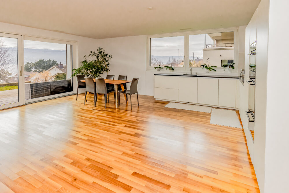 Hoch über dem Alltag, in sonniger Panoramalage: Diese neuwertige Wohnung begeistert mit beeindruckender Seesicht, lichtdurchfluteten Räumen und exklusivem Wohnkomfort – und dank der hervorragenden Anbindung an öffentliche Verkehrsmittel sind Sie in kürzester Zeit im Zentrum. Auf einen Blick: + SEESICHT: unverbaubare Aussichtslage mit Abendsonne + GROSSZÜGIG: 100m2 Wohnraum, Terrasse + ZUSTAND: bezugsbereit, kein Investitionsbedarf, modern + TOP ANBINDUNG: innert kürzesten Zeit im Zentrum + WOHNEN: offen gestaltetes Wohn- und Esszimmer + MODERN: Fussbodenheizung, hochwertiger Parkett, offene Küche mit Vollausstattung + PARKPLATZ: 1 Tiefgaragenparkplatz mit E-Mobilität Vorbereitung inklusive Bei Interesse senden wir Ihnen gerne einen ausführlichen Objektbeschrieb inklusive sämtlichen Informationen und freuen uns, Sie persönlich an einem Besichtigungstermin beraten zu dürfen. WENET AG – Immobilien der KI Group AG since 1974.
