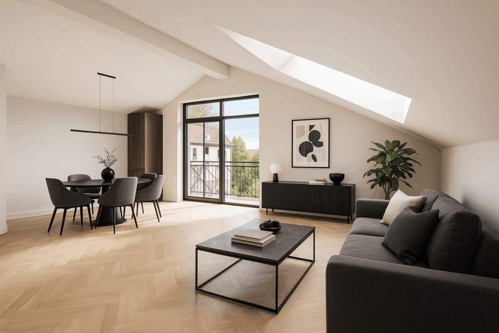 Wenn Sie einzigartige Architektur und grosszügige Raumhöhen schätzen und sich besonders im obersten Stockwerk zuhause fühlen, wird Sie diese Wohnoption begeistern.