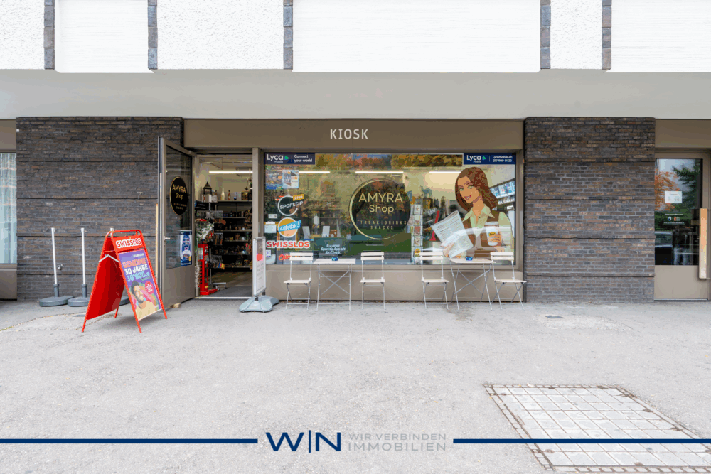 Dieses Ladenlokal eignet sich für Personen, die ihren Traum von der Selbständigkeit verwirklichen wollen und über einen sicheren Umsatz von CHF 60’000.00 mit der Weiterführung des Kioskes generieren möchten. Wir bieten Ihnen den grossen Kundenstamm, die Top-Lage sowie das gesamte Kioskinventar, welches übernommen werden muss.