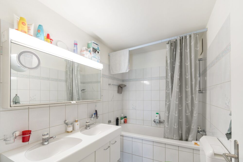 Insgesamt finden sich 3 grosszügige, lichtdurchflutete Schlafzimmer mit viel Platz für die ganze Familie und individuellen Einrichtungsmöglichkeiten. Dank der 2 hellen, grosszügigen Nasszellen mit DU/WC und Bad/WC ist die Alltagserleichterung/Zeitersparnis garantiert. Zur Wohnung gehört 1 gedeckter Abstellplatz (im Preis inkl.), weitere Parkmöglichkeiten können in nur wenigen Gehminuten entfernt dazu gemietet werden. Das freistehende Haus bietet zudem mehrere Besucherparkplätze.