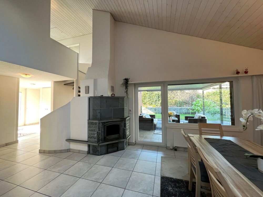 Ein weiteres grosses Plus der offene Living-Bereich mit einer Raumhöhe von über 4m sowie der hochwertige, sehr erlesene Speck-Stein Ofen, welcher sich perfekt in den Raum integriert.