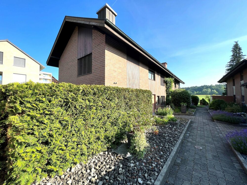 Ein weiteres Plus ist der erhöhte Sitzplatz im Garten mit Blick auf die Rigi mit elektronischem Beschattungssystem.