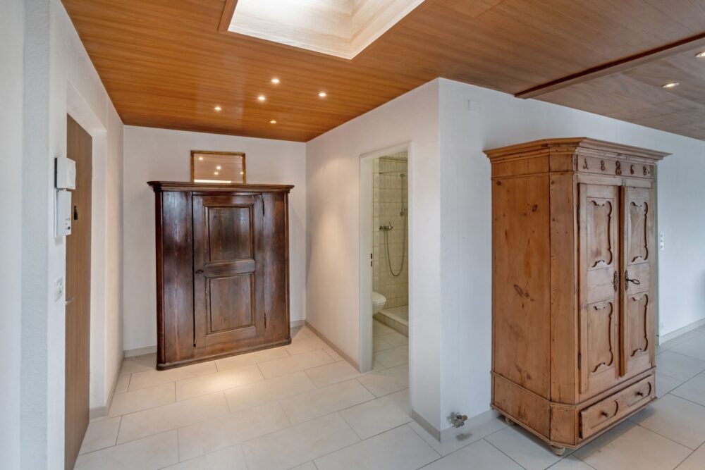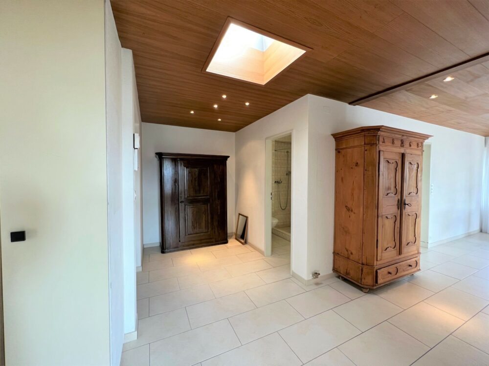 Lassen Sie sich überraschen von einem modernen, klaren Grundriss welcher bereits im Eingangsbereich den Hauch von Eleganz ausstrahlt. Nicht nur wohnen – hier werden Sie von einigen Extras überrascht werden, wie im Sommer einfach direkt in den Swimming-Pool sich erholgen und den Abend auslingen lassen dank einer grosszügigen Gartenanlage.