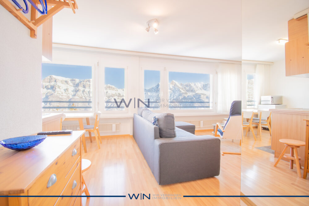 Dieser Adlerhorst ist Ihre neue Ferienwohnung auf dem Flumserberg, im 8. Stock, mit genialer Aussicht auf den Walensee und die Churfirsten. Im Dorfzentrum an bevorzugter, ruhiger Lage mit höchster Privatsphäre ist die Ferienwohnung angenehm mit dem Lift erreichbar. Sie ist mit dem Einbau einer Leichtbauwand einfach zur 2.5-Zimmerwohnung ausbaubar. Das Badezimmer wurde 2024 vollständig modernisiert und mit hochwertigen Materialien neu ausgestattet. Auch die Fensterfront sowie die Küchengeräte wurden auf einen hochwertigen Standard erneuert. Zur Wohnung gehören zudem ein Abstellraum, ein Schliessfach für vier Paar Skis sowie ein Aussenparkplatz. Die gemeinschaftliche Waschküche bietet einen praktischen, sozialen Treffpunkt und ist direkt über eine Unterführung mit dem öffentlichen Hallenbad samt Wellnessbereich verbunden. Auf einen Blick: + SEE / BERGSICHT: unverbaubar, Blick auf Walenssee und Berge + PRIVATSPHÄRE: Rückzugsoase, nicht einsehbar + MODERNISIERT: neues Bad, neue Küchengeräte, neue Fensterfront, 3-fachverglast + ZUFAHRT: Ganzjahres Zufahrtsberechtigung uneingeschränkt + LAGE: im Zentrum, Skilift zu Fuss gut erreichbar + BAUQUALITÄT: Alle Leitungen und Steigzonen neu, potential zur 2.5-ZWG +STWEG: Der Erneuerungsfonds ist mit 1 Mio. CHF geäufnet + FERIENORT: Wintersportgebiet, Wandergebiet, Bikerparadies, Zürich schnell erreichbar + VERMIETUNG: Etablierte Ferienvermietung CHF 1'000.- pro Woche Bei Interesse senden wir Ihnen gerne einen ausführlichen Objektbeschrieb inklusive sämtlichen Informationen und freuen uns, Sie persönlich an einem Besichtigungstermin beraten zu dürfen. WENET AG – Immobilien der KI Group AG since 1974.