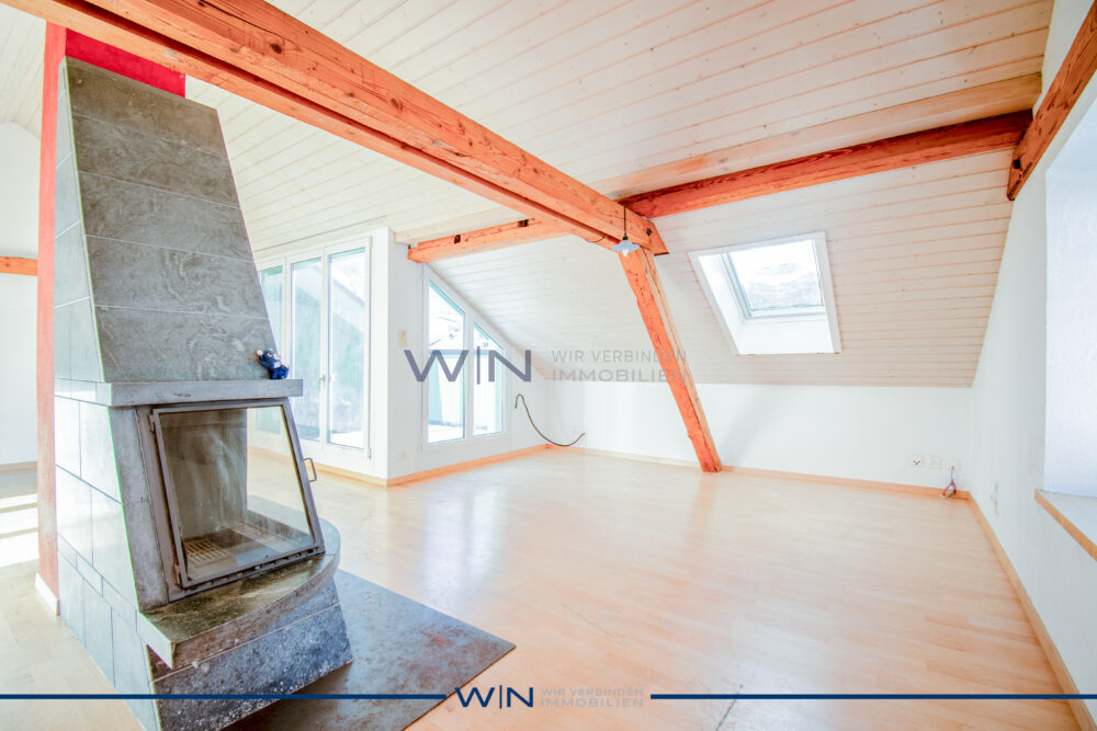 Die grosse Dachmaisonette-Wohnung wurde 2017 kernsaniert und ist bezugsbereit, mit viel Exklusivität und ansprechender Architektur. Dazu offene Küche, Cheminée und ansprechende Dachterrasse.