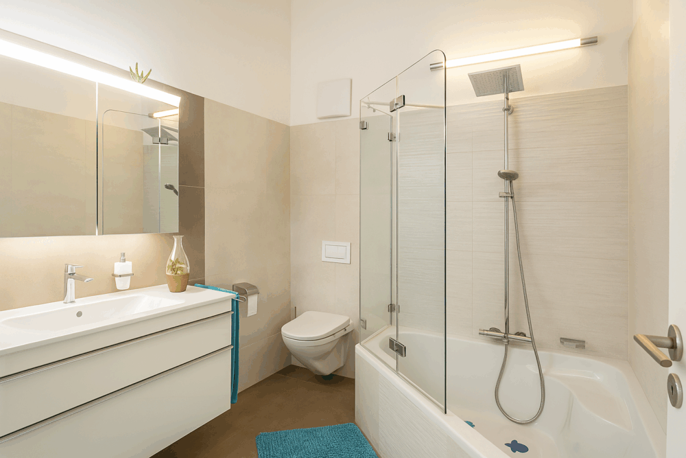 + BAD: Zwei stilvolle Badezimmer – eines mit Dusche, eines mit Badewanne