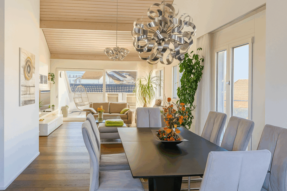 Wangs selbst präsentiert sich als charmantes Dorf am Eingang zum Heidiland – ein Ort, an dem Ruhe, Naturverbundenheit und hohe Lebensqualität Hand in Hand gehen. Die sonnige, familienfreundliche Lage dieser Attikawohnung eröffnet einen freien, eindrucksvollen Blick auf die markante Bergkette der Churfirsten, ein Panorama, das Tag für Tag aufs Neue beeindruckt. Dank der zentralen Position erreichen Sie Schulen, Einkaufsmöglichkeiten sowie den Autobahnanschluss in wenigen Minuten. Und mit Bad Ragaz in unmittelbarer Nähe stehen Ihnen ein renommiertes Thermalbad, ein attraktiver Golfplatz sowie ein vielseitiges Freizeit- und Gastronomieangebot zur Verfügung.