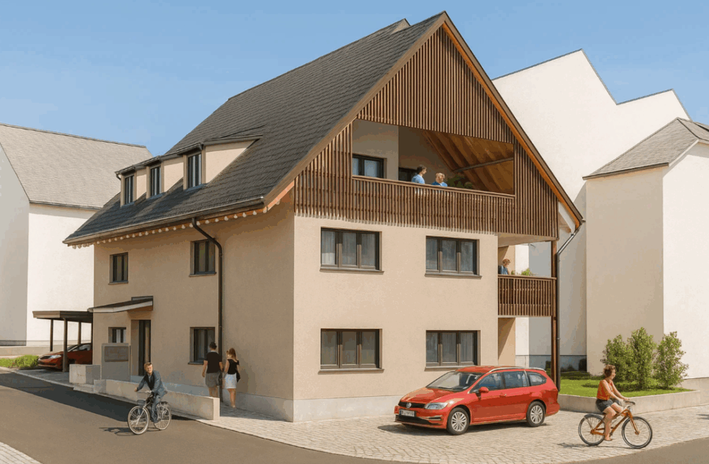 Der Neubau überzeugt durch eine moderne, zurückhaltende und zugleich konsequente Architektur, die klare Formen und zeitlose Eleganz harmonisch vereint. Die exklusive Wohnanlage wird in solider, konventioneller Bauweise errichtet und steht damit für Langlebigkeit, Wertbeständigkeit und höchste Bauqualität. Grosszügig geschnittene Grundrisse, lichtdurchflutete Räume und eine sorgfältig abgestimmte Material- und Farbwahl schaffen ein Wohnambiente, das gleichermassen modern wie behaglich ist. Anspruchsvolle Käuferinnen und Käufer erwartet hier ein Neubauprojekt, das modernste Wohnstandards mit stilvoller Architektur und einem hohen Mass an Komfort verbindet. Alles auf einen Blick: + BEZUG: Neubau, Erstbezug n.A., 2027 + ERREICHBARKEIT: Lift, rollstuhlgängig, altersgerecht, nachhaltig + QUALITÄT: Ausbau n. Baubeschrieb / oder n. Käuferwunsch + NUTZUNG: Aufteilung n.A. / individueller Innenausbau + ÜBERGABE: Schlüssel-/bezugsfertig + WOHNFLÄCHE: ab ca. 70 m2 bis ca. 200 m2 + STAURAUM: Keller- / Nebenräume / Hobbyräume n.A. + PARKSITUATION: Optimale Parkplatzsituation, Carport, Besucher + LAGE: Zentral, top-Standort, beste Zentrumslage, beste ÖV-Anbindung Die Umgebung der Liegenschaft wird mit grosszügigen Rasenflächen gestaltet, die Hauszugänge und Vorplätze hochwertig ausgeführt. Moderne Hausanschlüsse sowie sämtliche infrastrukturellen Erschliessungen sind selbstverständlich gewährleistet. Änderungen in Detailausführungen bleiben dem Generalunternehmer vorbehalten, ohne dabei die Qualität oder Ästhetik zu beeinträchtigen, so wird ein reibungsloser Bauablauf sichergestellt. Dieses Neubauprojekt vereint hochwertige Architektur, durchdachte Bauweise und eine unvergleichlich zentrale Lage. Wer ein Zuhause mit Stil, Komfort und Zukunftswert sucht, findet hier die ideale Investition. Raumangebot und Wohnprogramm: - EG: 1 x 3.5 Zi.-Whg. (ca. 91.5m2) CHF 875'000.- 1 x 2.5 Zi.-Whg. (ca. 64.3m2) CHF 611'000.- ***** - OG: 1 x 3.5 Zi.-Whg. (ca. 91.6m2) CHF 875'000.- 1 x 2.5 Zi.-Whg. (ca. 70.5m2) CHF 670'000.- ***** - DG: 1 x 5.5 Zi.-Whg. (ca. 197.7 m2) CHF 1.72 Mio. -------------------------------------------------- Besucherparkplatz 4 x à CHF 8'000.- Hobbyraum 2 x à CHF 15'000.- Carpot-Parkplatz CHF 20'000.- (1 pro Wohnung) Bei Interesse senden wir Ihnen gerne einen ausführlichen Objektbeschrieb inklusive sämtlichen Informationen und freuen uns Sie persönlich an einem Besichtigungstermin beraten zu dürfen. WENET AG - Immobilien der KI Group AG since 1974.