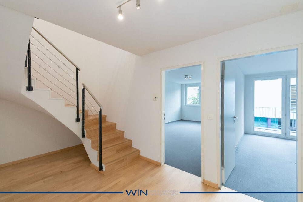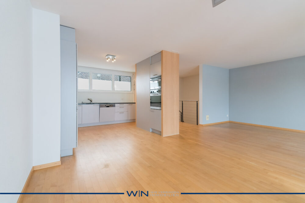 Diese exklusive Maisonette-Wohnung überzeugt durch ihre offene Loft-Architektur auf zwei Etagen und ein durchdachtes Raumkonzept. Der Eingangsbereich befindet sich in der dritten Etage. Dort erwarten Sie ein lichtdurchfluteter Wohn- und Essbereich mit beeindruckender Raumhöhe sowie eine moderne, offen gestaltete Küche – der ideale Mittelpunkt für Wohnen, Kochen und Begegnungen. Über eine elegante Treppe gelangen Sie ins darunterliegende Geschoss, wo sich zwei grosszügige Schlafzimmer und das stilvolle Badezimmer befinden. Die klare Trennung zwischen Wohn- und Schlafbereich sorgt für höchsten Wohnkomfort und Privatsphäre. Auf einen Blick: + BALKON: 2 Balkone je 4.4 m2 + ZUSTAND: Bezugsbereit, per sofort + PRIVATSPHÄRE: uneingeschränkte Rückzugsoase in allen Belangen + BAUQUALITÄT: Solide und massive Bauweise, moderne Ausstattung inklusive Parkettboden + RAUMANGEBOT: Grosser Ess- /Wohnraum, 2 grosse Schlafzimmer, Lift + PARKMÖGLICHKEITEN: 1 x Tiefgaragenparkplatz, welcher dazu gekauft werden muss, Besucherparkplätze vorhanden Bei Interesse senden wir Ihnen gerne einen ausführlichen Objektbeschrieb inklusive sämtlichen Informationen und freuen uns, Sie persönlich an einem Besichtigungstermin beraten zu dürfen. WENET AG – Immobilien der KI Group AG since 1974.